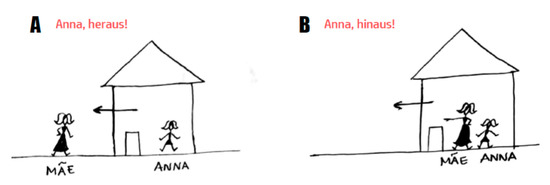 To test the PI model, I selected a problematic grammatical form that the learners may be able to recognize but have had very little contact with and that is not explicitly addressed in the DaF (Deutsch als Fremdsprache—German as a foreign language) curriculum. This form is a double particle used in movement structures and consists of the combination of the perspective particles hin- (‘thither’) and her- (‘hither’) with trajectory particles, e.g., -ein- (‘into’), -aus- (‘out of’). To explain the cognitive and semantic features of this specific form and its occurrences in various syntactical environments, I resorted to Talmy’s (1985, 2000a, 2000b) theoretical studies on motion events and his typological framework for event integration that divides languages into two typologically distinct groups according to motion expression: satellite-framed and verb-framed languages.