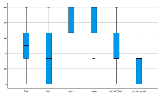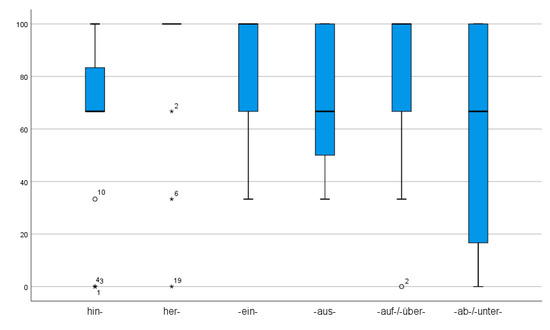 - Learners should reveal more difficulty processing the deictic information conveyed by hin- and her- than processing Path information (-ein-, -aus-, -auf-, -über-, -unter-, -ab-), since the latter share morphological and lexical–semantic properties with other lexical elements (e.g., prepositions, adverbs) with which the learners are already familiar.