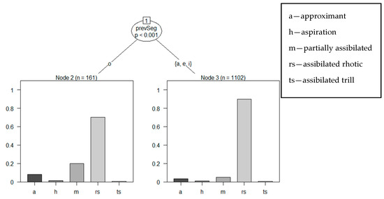 In the following conditional inference tree (Figure 4), we explore the relationship between preceding vowels (/a/, /e/, /i/, /o/)8 and different rhotic variants to determine if certain patterns of distribution can be elucidated.