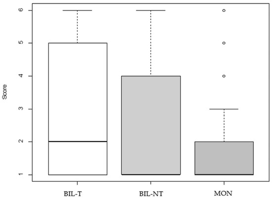 2.1.2. Comparisons across the Monolingual Group and the Two Bilinguals Groups