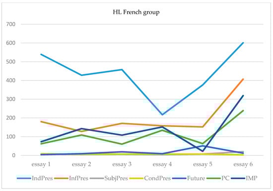 We are also making the following predictions: (a) There will be a morphological form effect with a better performance and overreliance on the indicative present and passé composé; (b) participants will be highly accurate as essays allow learners to avoid forms they may not have fully acquired yet; (c) French and Spanish heritage speakers will benefit from a facilitative effect.