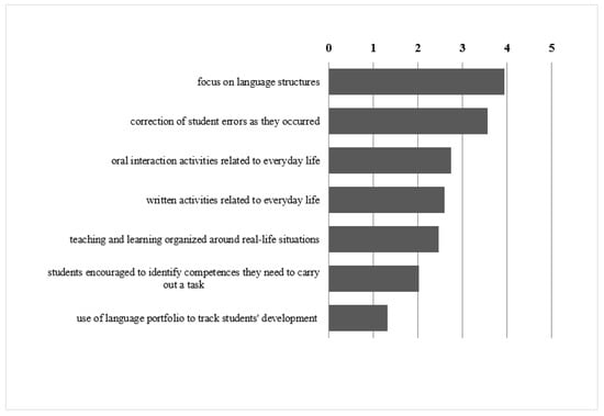 - Moonen, Machteld, Evelien Stoutjesdijk, Rick de Graaff, and Alessandra Corda. 2013. Implementing CEFR in secondary education: Impact on FL teachers’ educational and assessment practice. International Journal of Applied Linguistics 23: 226–46. [Google Scholar] [CrossRef]