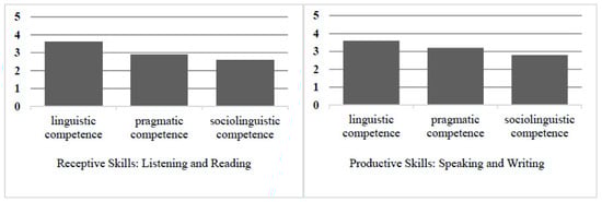 Emphasis (0–5) on Competences in Receptive and Productive Skills before Professional Learning.