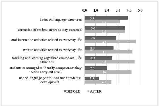 4.3. Changes in Teachers’ Reported Practices under the Current Guidelines and after CEFR-Related Learning
