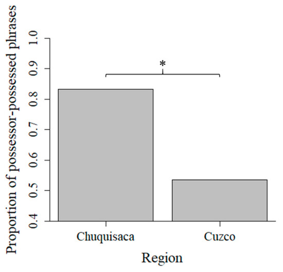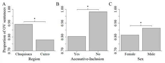 | 6 | Recall that omission of the accusative marker is a feature of the Bolivian variety alone in this corpus (N-Chuquisaca = 338 vs. N-Cuzco = 3 utterances). As such, we do not include the interaction of Region by Accusative-Inclusion. |