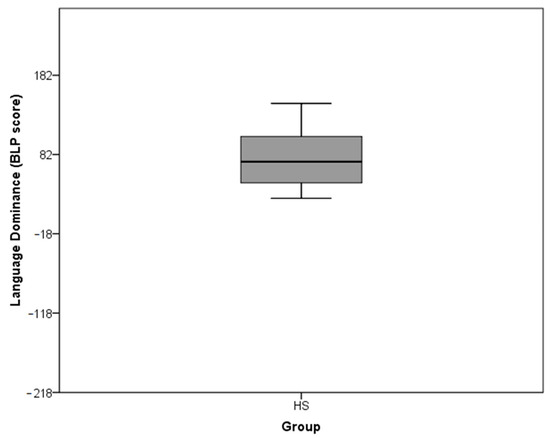 Distribution of the language dominance scores for the heritage speakers (HS) group according to the Bilingual Language Profile (BLP).