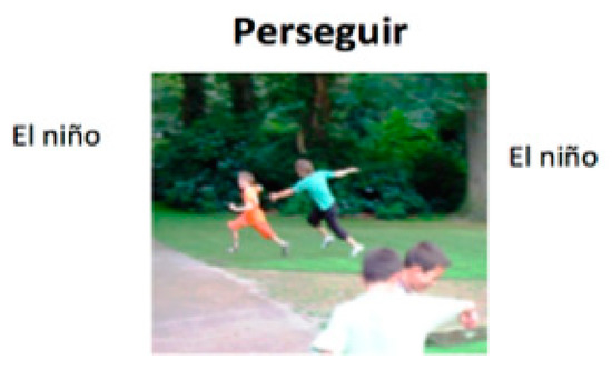 In the elicitation task, participants were presented with a picture with a verb and animate and inanimate NPs as subjects and objects on a computer screen and were asked to produce a sentence describing the picture using the verb and NPs given (see Figure 1). Participants were told to conjugate the verb in the preterite tense, so the presence or absence of DOM could be perceived.4 In total, participants were presented with 24 pictures: 12 with animate objects and 12 with inanimate objects. Another 12 pictures functioned as fillers. The fillers prompted participants to use different constructions (e.g., sentences with gustar-type verbs).