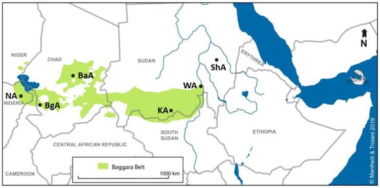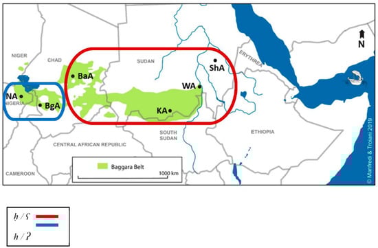 At the present time, Baggara Arabs are involved by different dynamics of language contact, mainly depending on their degree of sedentarization and their relative demographic weight. On the one hand, the Shuwa of north-eastern Nigeria represent a largely sedentarized linguistic minority. Accordingly, speakers of Nigerian Arabic present a high degree of bilingual proficiency in Kanuri and/or Hausa, while maintaining transmission of their ancestral language to younger generations (Owens 2020, p. 177). On the other hand, Baggara Arabs of Sudan represent an ethnolinguistic majority and they still hold on to their semi-nomadic production system. Accordingly, they have hardly developed any bilingual competence in the different languages of sedentary communities of Darfur and Kordofan. Nevertheless, due the dominant position of Arabic in Sudan, western Baggara groups are affected at different degrees by dialect mixing and leveling towards Sudanese Arabic (Manfredi 2013, cf. 5).