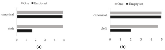 - Destruel, Emilie, and Joseph DeVeaugh-Geiss. 2018. On the interpretation and processing of exhaustivity: Evidence of variation in English and French clefts. Journal of Pragmatics 138: 1–16. [Google Scholar] [CrossRef]