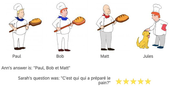 Sample test item, including the picture, Ann’s answer and Sarah’s question, to be rated.
