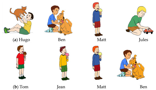 In the exhaustive picture (Figure 3a), only one character, Matt, is eating ice cream, while three of the characters in the non-exhaustive condition (Figure 3b) are eating ice cream. When Ann answers the question ‘Who ate ice cream?’, she can choose to mention some (non-exhaustive) or all (exhaustive) relevant individuals in condition (b), but she can only respond with the exhaustive mention (i.e., Matt) in condition (a).