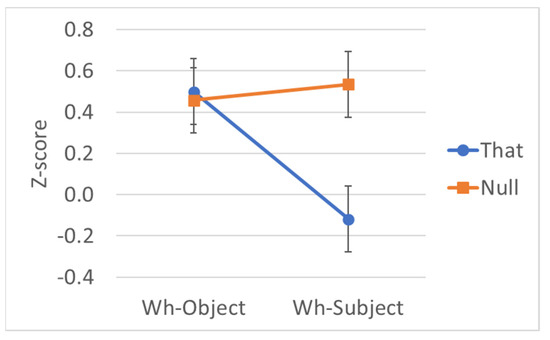 The monolingual English stimuli had a 2 × 2 factorial design, as shown in Table 3: Wh-extraction (Subject vs. Object) and realization of C (that vs. Null).