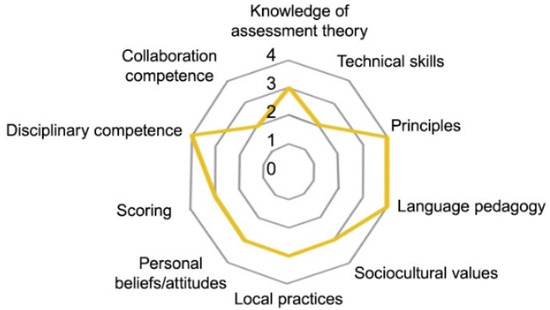 - Vogt, Karin, and Dina Tsagari. 2014. Assessment Literacy of Foreign Language Teachers: Findings of a European Study. Language Assessment Quarterly 11: 374–402. Available online: https://www.researchgate.net/publication/280217358_Assessment_Literacy_of_Foreign_Language_Teachers_Findings_of_a_European_Study (accessed on 3 June 2021). [CrossRef]