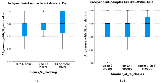 Between-group Differences: (a) Alignment with the SL curriculum * Hours of SL Teaching; (b) Alignment with the SL Curriculum * Numbers of SL Classes.