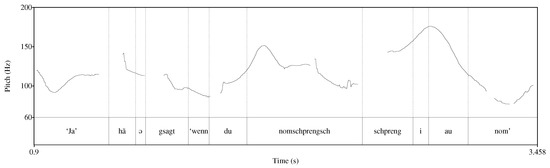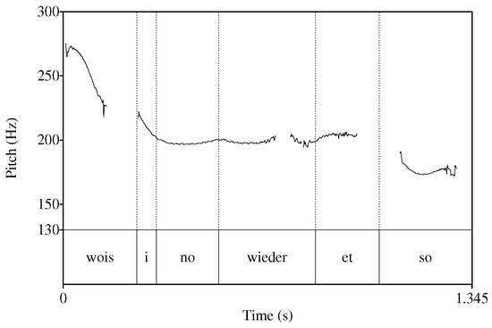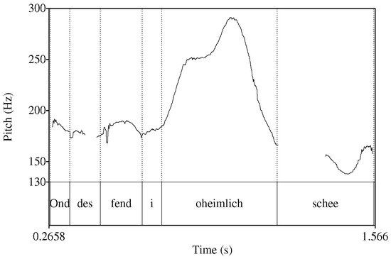 - Féry, Caroline, and Frank Kügler. 2008. Pitch accent scaling on given, new and focused constituents in German. Journal of Phonetics 36: 680–703. [Google Scholar] [CrossRef]