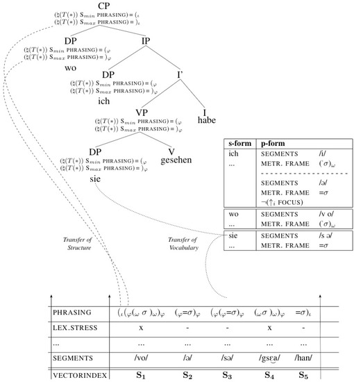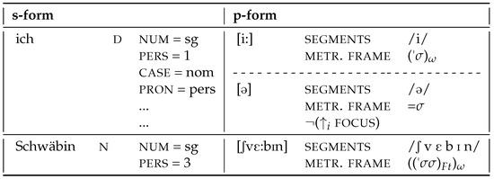 These recursive structures are not predicted by syntactic structure and the mapping algorithms at the interface between syntax and prosody, but are determined by principles native to the phonological module alone (where they are often referred to as “wellformedness constraints”). However, these principles are likewise dependent on a detailed prosodic representation of the individual forms—in the cases discussed here, this would be the information on whether the pronouns are prosodically weak or strong, which is essential for the establishment of, for example, a recursive prosodic word structure. This information should be established at the interface between the syntax and p-structure, but current mapping algorithms at the word-level only distinguish between function words and content words based on the morphosyntactic word category (D for pronouns) and do not allow for a more fine-grained representation of the variation found especially within the group of function words.