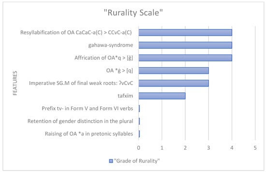 Similarly, the affrication of *q is traditionally more strongly associated with the rural type (Fischer and Jastrow 1980, pp. 142–43; cf. Blanc 1964, pp. 25–28, who calls the affrication of *q “a hallmark of the countryside”; Palva 2009, p. 37, fn. 19). According to Blanc’s informants (Blanc 1964, pp. 27–28), speakers perceive forms with ǧ (< *q) instead of g or q as rural or ‘provincial’, or the use of g or retention of *q as urban.
