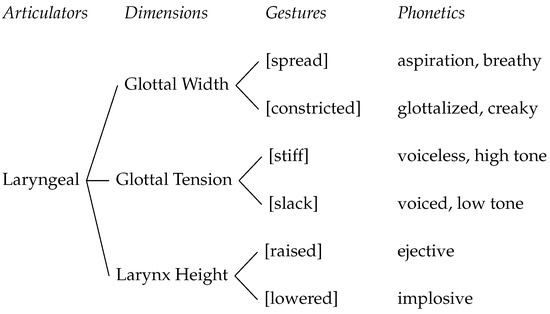 - Iverson, Gregory K., and Joseph Salmons. 1995. Aspiration and laryngeal representations in Germanic. Phonology 12: 369–96. [Google Scholar] [CrossRef]