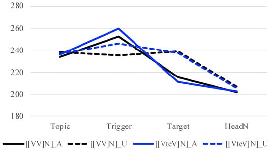 For verbs, we prepared a structure in which X1 and X2 are verbs, and X1 is in the continuative form, as in (7a), and a structure in which X1 and X2 are verbs, and X1 is in the -te form, as in (7b).7
