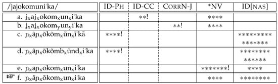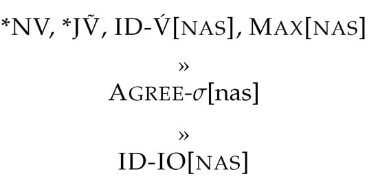 - Alderete, John D. 2001. Dominance effects as transderivational anti-faithfulness. Phonology 18: 201–53. [Google Scholar] [CrossRef] [Green Version]