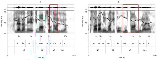 | 1 | The discussion of focus realization in the following subsections is limited to studies investigating the difference between wide and narrow focus. For analyses of other focus types, see () for Bengali, () and () for Hindi. |