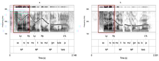 - Ladd, D. Robert. 1986. Intonational phrasing: The case for recursive phrasing. Phonology Yearbook 3: 311–40. [Google Scholar] [CrossRef]