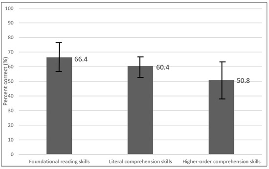 The average percent correct of students’ performance on each subconstruct reading skill.