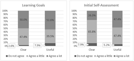 Clarity and usefulness of learning goals and initial self-assessment for understanding learning expectation for students.