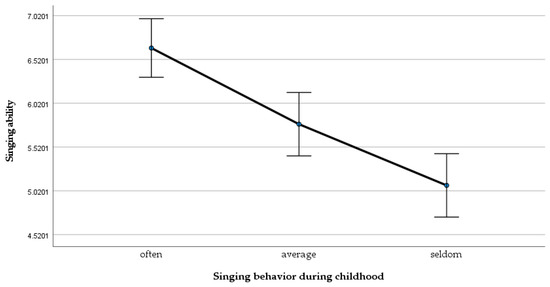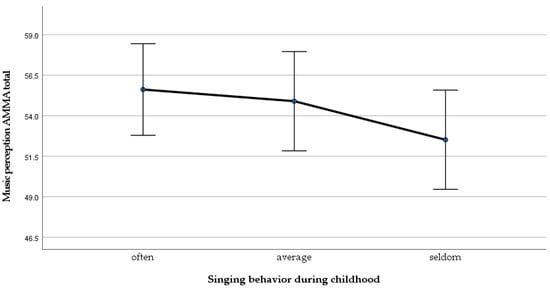 Based on the response options, 34 participants classified themselves as belonging to the “often group”, 29 participants to the “average” group, and 29 participants to the “seldom” singing group. The statistical analyses in the Results and Methods sections are based on the response option. However, as a retest, we also used the multi-item scale concept singing behavior during childhood and analyzed the concept’s relationship to the second childhood singing variable by applying correlational analysis. In addition, we performed cluster analysis to establish groups based on the eight statements of the multi-item scale concept and ran the same statistical analyses again. Since both the multi-item scale concept, and the response options have provided almost identical findings, the statistical analyses of the multi-item scale concept, including a short description of the statistical approach, have only been included in the Supplementary Materials Sections S2.3 and S2.4.