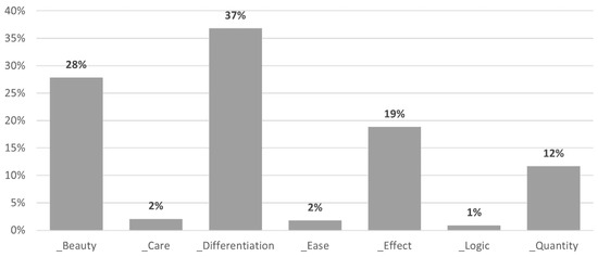 Figure 6 shows that the lower-level categories of Quality arguments encountered in the early modern period were (in order of frequency): Quality_Differentiation, _Beauty, _Effect, _Quantity, _Care, _Ease, and _Logic. These types of arguments can be characterised by the following examples (our translations; the argument in question is underlined, as most cited entries contain multiple arguments):