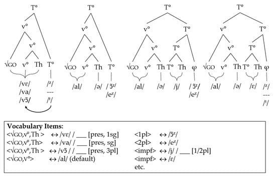 - Fábregas, Antonio. 2007. Ordered Separationism: The Morphophonology of ir. In Selected Proceedings of the 5th Décembrettes: Morphology in Toulouse. Edited by Fabio Montermini, Gilles Boyé and Nabil Hathout. Somerville: Cascadilla Proceedings Project, pp. 59–67. [Google Scholar]