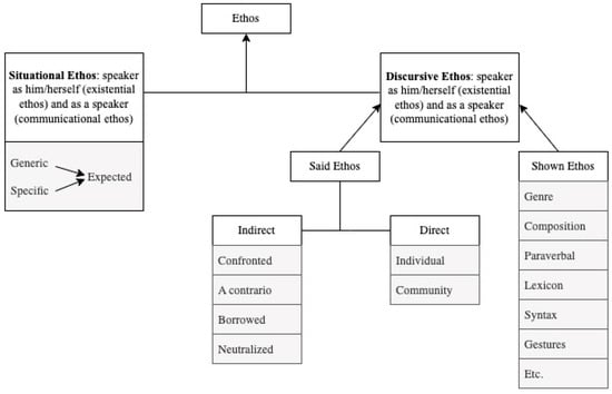 - Maingueneau, Dominique. 2013. L’èthos: Un articulateur. COnTEXTES. Revue de Sociologie de la Littérature 13: 13. [Google Scholar] [CrossRef]