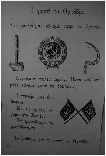 - Demetriou, Amphyction. 1933. Aλφαβητάριο για τα σκολία τον ιλικιομένον τις πρότις βαθμίδας [Primer for Adult Schools of the First Grade]. Mariupol: Ukrainian State Publishers for Ethnic Minorities, (In Demotic Greek). [Google Scholar]