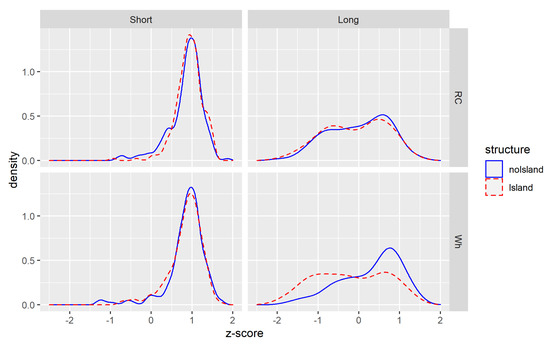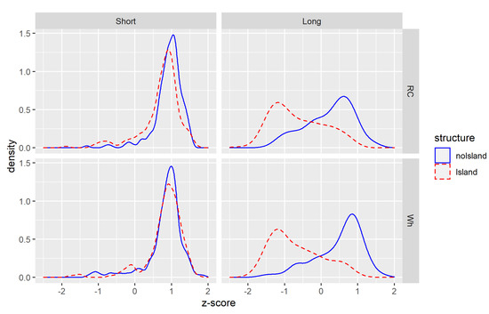 - Liu, Yingtong, Rachel Ryskin, Richard Futrell, and Edward Gibson. 2022. On dissociating adjunct island and subject island effects. Cognition 222: 104902. [Google Scholar] [CrossRef] [PubMed]