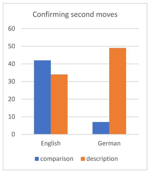A Pearson’s chi-square test revealed that the distribution of second move comparisons versus second move descriptions in the production of the two language groups was significantly different: X2(1) = 25.26, p < 0.001. Both types of confirmations, i.e., comparisons and descriptions, will be addressed in turn.