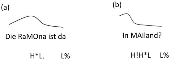 - Peters, Jörg. 2018. Phonological and semantic aspects of German intonation. Linguistik Online 88: 85–107. [Google Scholar] [CrossRef]