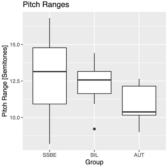 - Mennen, Ineke, Felix Schaeffler, and Gerard Docherty. 2012. Crosslanguage difference in f0 range: A comparative study of English and German. Journal of the Acoustical Society of America 131: 2249–60. [Google Scholar] [CrossRef]