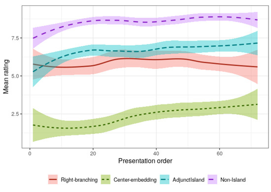 - Sprouse, Jon. 2009. Revisiting satiation: Evidence for an equalization response strategy. Linguistic Inquiry 40: 329–41. [Google Scholar] [CrossRef]