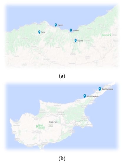 (a) Pontic Greek-speaking villages in Trabzon. (b) Transplanted Pontic Greek speakers in Karpasia.