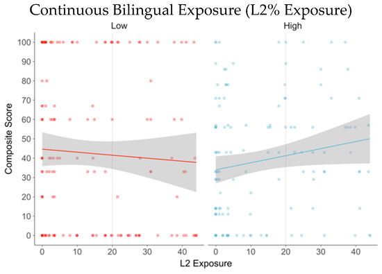 3.4.3. Model 3. Second Language Exposure (L2%)