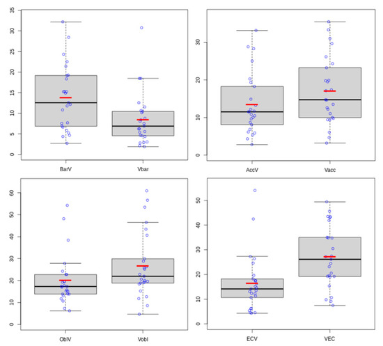 A considerably more detailed breakdown of V+X pairs is given in the four boxplots in Figure 1, visualizing the data that constitute the basis of the discussion in this section.