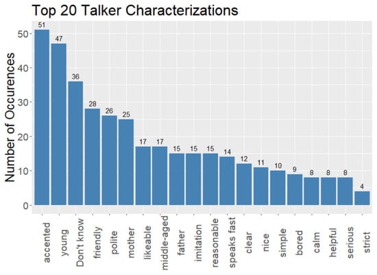 Figure 2. Top 20 talker characterizations by Albanian and Greek subjects with the number of occurrences in the data.4