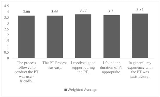 To investigate the face validity of the test, student perceptions on the PT were gathered using a section of the institutional ‘New Student Survey- Fall 2020′ (MEC 2021). The section carried five items that used the Likert scale of agreement. The items included user-friendliness, process, the support provided during the test, duration, and overall satisfaction. The survey link was shared with all the students enrolled in the first semester of the Foundation, UG, and PG programs. However, only 109 students responded to the survey and 83 students answered the section on the PT. Only 57 (67.47%) students, who had attempted the PT, completed the PT section of the survey.