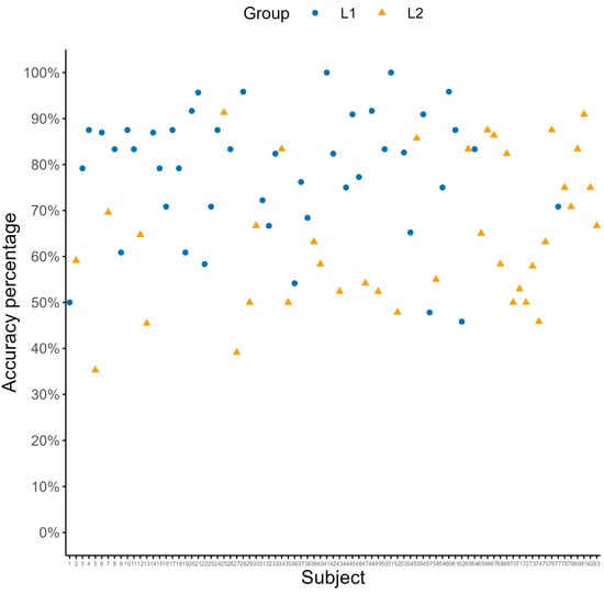 5.2.2. Replication of Group-Level Subject-Preference and L1 Advantage
