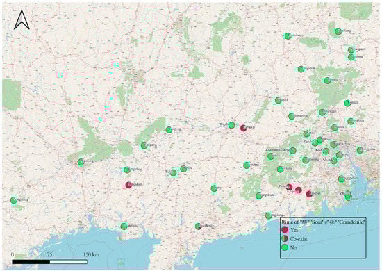 Contrast of the rime between *son1 “酸” and *sun1 “孫” in the data sites.
