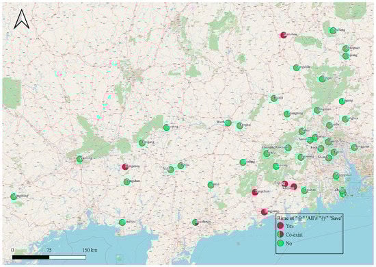 For the purpose of visualizing the spatial variations in linguistic data and developing interpretive maps, this study makes use of QGIS (). The base map of the maps is Open Street Map available in the QGIS’s plugin “QuickMapServices”. Unless otherwise specified, the syllables selected for map production are commonly spoken colloquial words.