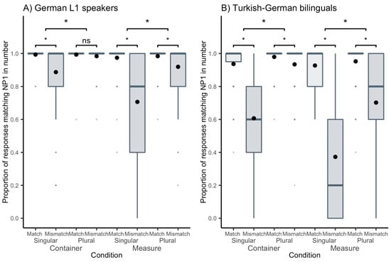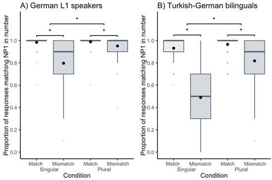 | Proportion of Responses Matching the Number of NP1 | L1 Speakers | Bilinguals | |||||