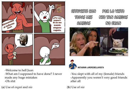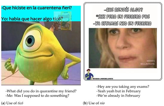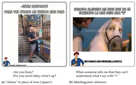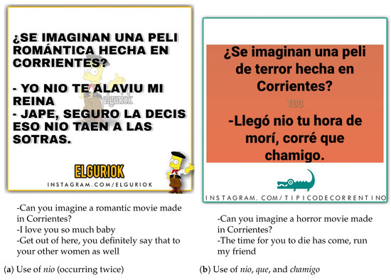 | 14 | Source (a): Típico de Correntino, https://www.instagram.com/p/CF2GiLEnrIi (accessed on 14 June 2023). Source (b): Angaú Memes, https://www.instagram.com/p/CCqWrU9HVokma6pAzyLpNmS7hb-5zrOTrzdC8c0 (accessed on 14 June 2023; this source URL only works for Instagram users who are followers of this page). |