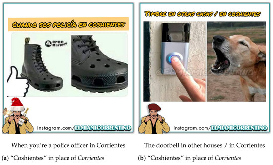 | 30 | Source (a): Memelandia Correntino, https://www.instagram.com/p/CavIyqKl3oM (accessed on 14 June 2023). Source (b): Un Correntino Dice, https://www.instagram.com/p/CM703fTswy0 (accessed on 14 June 2023). |