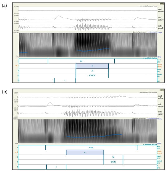 - Desmeules-Trudel, Félix, and Marc Brunelle. 2018. Phonotactic restrictions condition the realization of vowel nasality and nasal coarticulation: Duration and airflow measurements in Québécois French and Brazilian Portuguese. Journal of Phonetics 69: 43–61. [Google Scholar] [CrossRef]